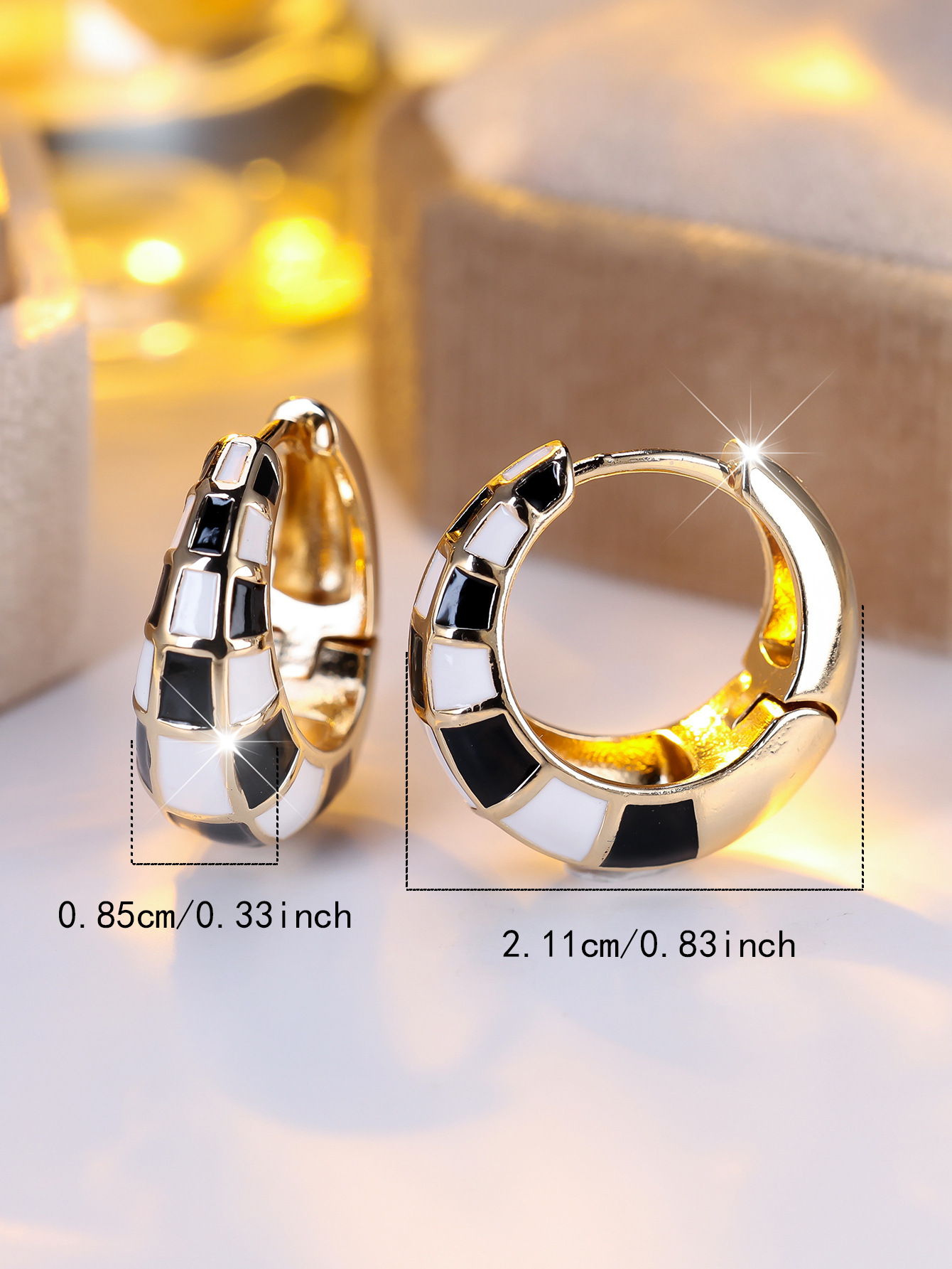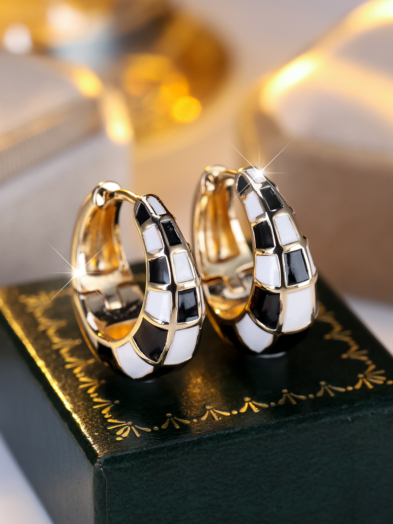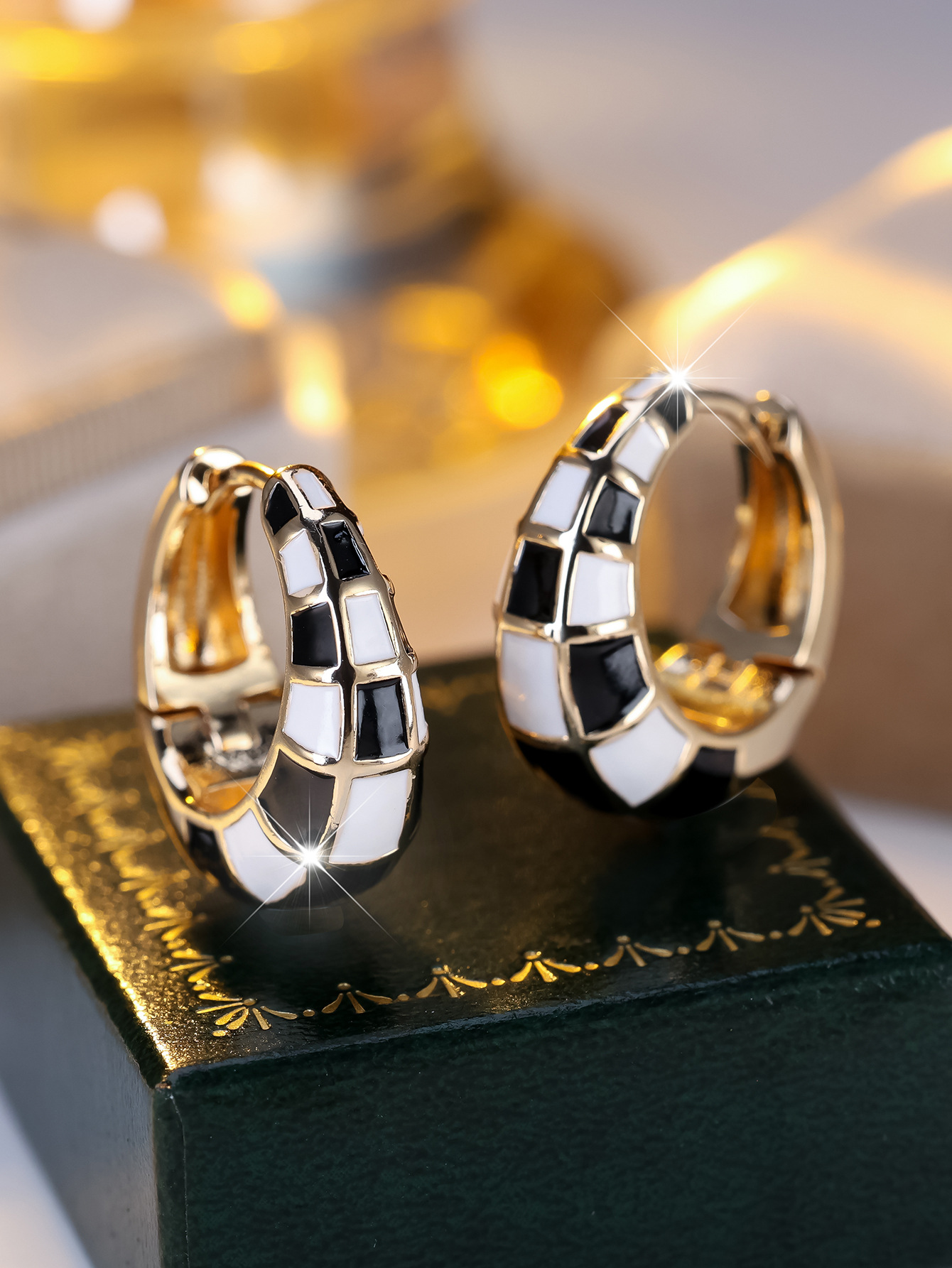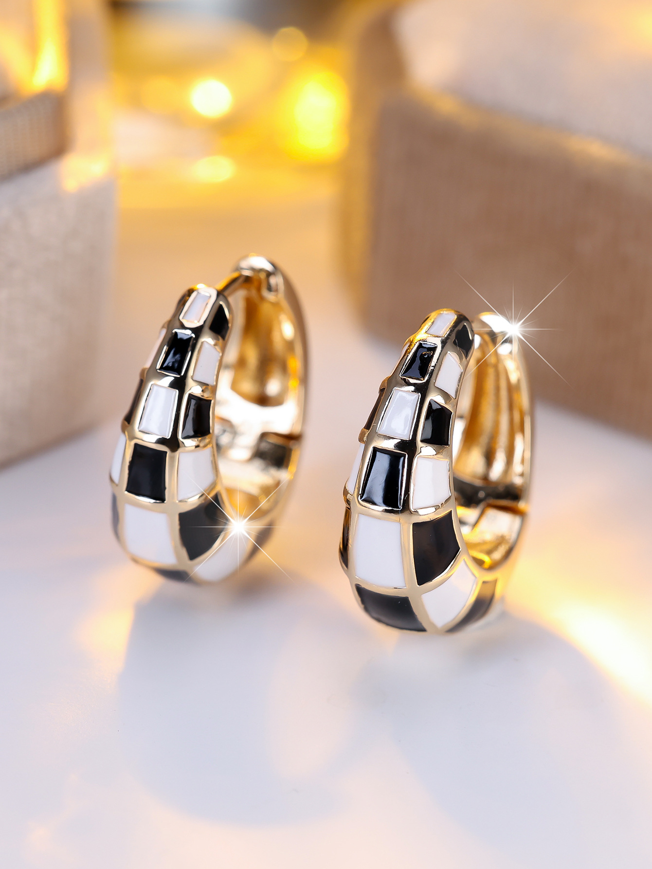 Fashionable And Classic French-style Round Checkerboard Ear Cuffs